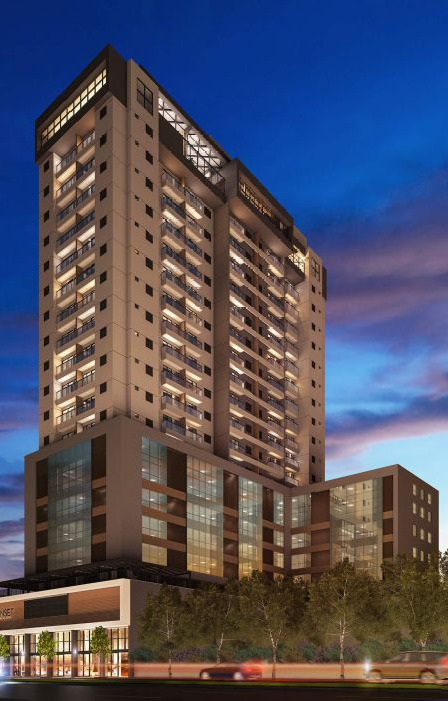 - Empreendimento de uso misto com andares comerciais e andares residenciais;